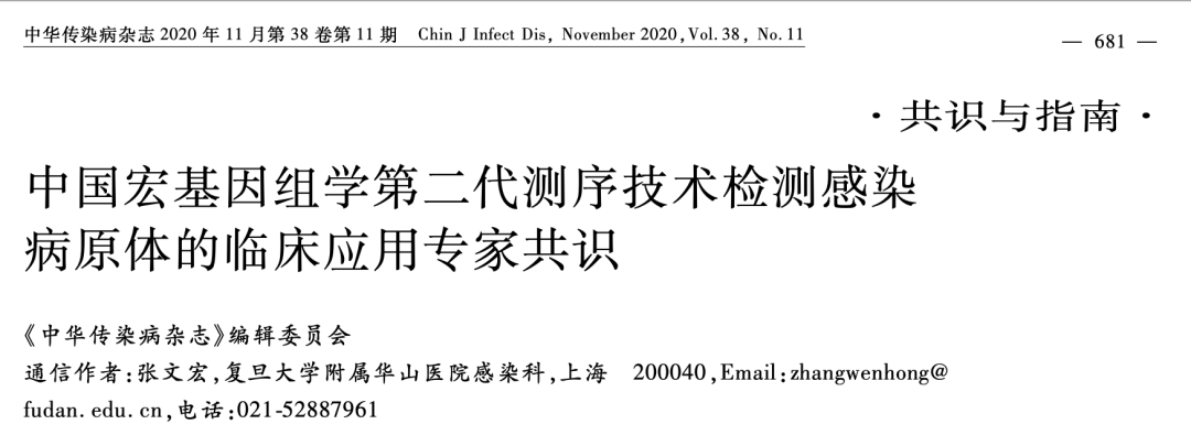 文獻速遞|中國宏基因組學第二代測序技術檢測感染病原體的臨床應用專家共識